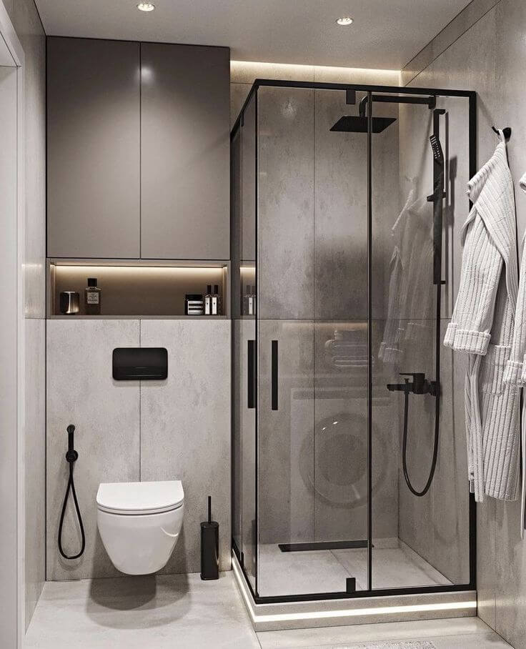 Чаще всего ванная представляет собой небольшое помещение. Но там тоже можно создать красивый, оригинальный и функциональный интерьер. Дизайнеры советуют использовать специальные душевые перегородки. Это несложные конструкции, которые состоят из стеклянных панелей и раздвижных дверей. Они нужны, чтобы ограничить место для мытья и защитить от брызг остальное помещение.